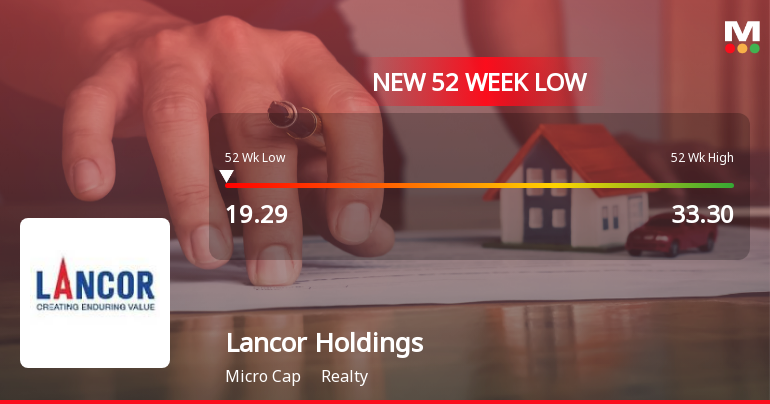 2026-03-13 19:21:01Lancor Holdings Ltd, a player in the realty sector, recorded a fresh 52-week low of Rs.19.29 today, marking a significant decline amid broader market pressures and sectoral weakness. The stock’s performance reflects ongoing challenges in maintaining growth momentum and financial stability.