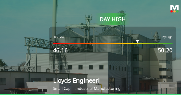 "description": "Lloyds Engineering Works Ltd recorded a robust intraday performance on 4 Feb 2026, surging to a day’s high of Rs 50.2, marking an 8.85% increase from its previous close. The stock outperformed its sector and broader market indices, reflecting strong trading momentum during the session."