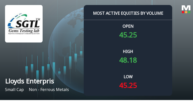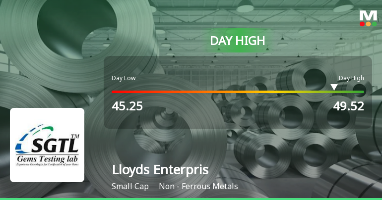 "description": "Lloyds Enterprises Ltd recorded a robust intraday performance on 5 Mar 2026, surging to a day’s high of Rs 49.52, marking a 7.12% gain. This sharp rebound followed four consecutive days of declines, reflecting a notable shift in trading momentum within the Non-Ferrous Metals sector."