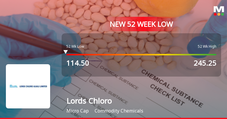 Lords Chloro Alkali Ltd Falls to 52-Week Low of Rs.114.5 Amid Prolonged Downtrend