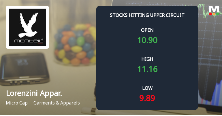 Lorenzini Apparels Ltd, a micro-cap player in the garments and apparels sector, surged to hit its upper circuit limit on 7 Jan 2026, propelled by strong buying interest and heightened investor participation. The stock recorded a maximum daily gain of 19.91%, closing at ₹11.02, signalling a significant shift in market sentiment despite its prevailing strong sell rating.