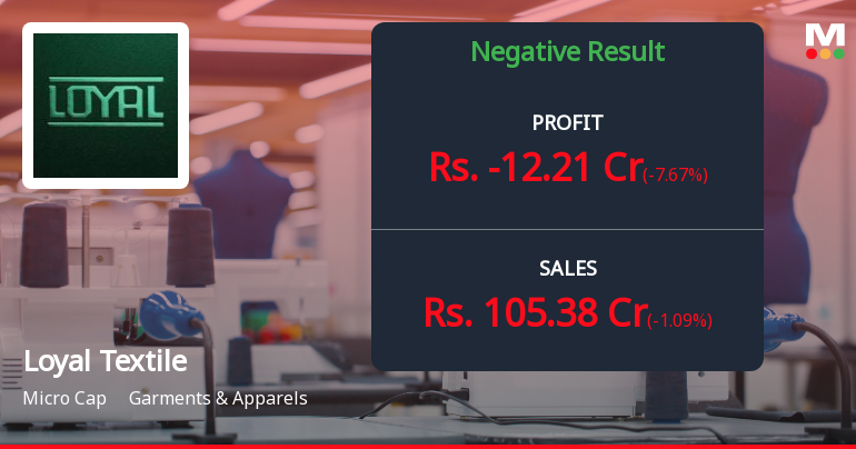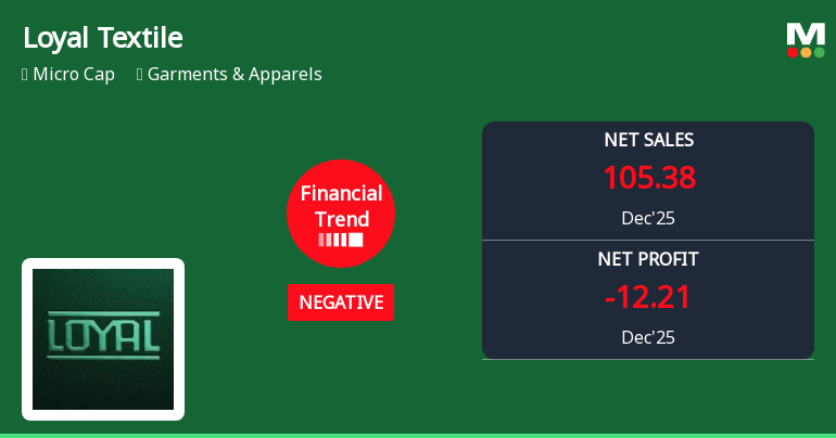 2026-02-12 09:40:15Loyal Textile Mills Ltd., the Tamil Nadu-based textile manufacturer, reported a consolidated net loss of ₹12.21 crores for Q3 FY26 (October-December 2025), marking the company's third consecutive quarter of losses. The results underscore deepening operational challenges as revenue contracted 32.10% year-on-year to ₹105.38 crores, whilst operating margins remained firmly in negative territory. The stock tumbled 5.00% to ₹248.10 following the results announcement, reflecting investor concerns about the company's deteriorating financial health and weak demand environment.