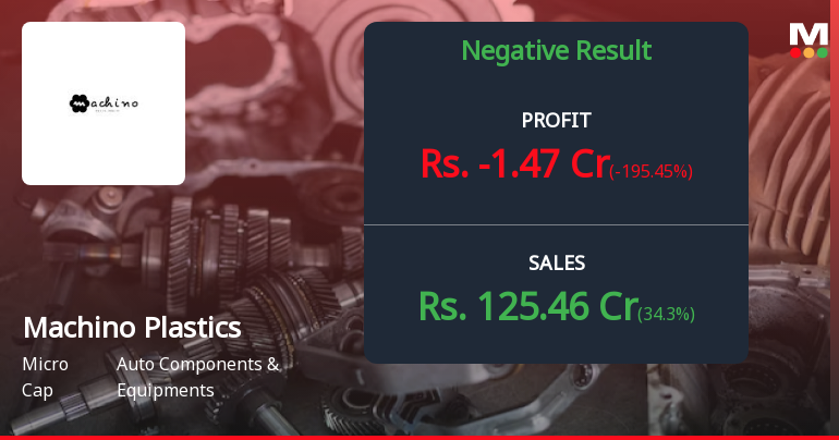 2026-02-06 19:04:08Machino Plastics Ltd., India's pioneering plastic bumper and dashboard manufacturer, reported a sharp deterioration in profitability for Q3 FY26, with net profit collapsing 74.53% quarter-on-quarter to ₹0.55 crores from ₹2.00 crores in Q2 FY26. Year-on-year, the decline was even steeper at 74.06% from ₹2.12 crores in Q3 FY25. The ₹175 crore market cap company's shares have retreated 24.48% over the past three months, reflecting mounting investor concerns about margin compression and operational challenges.