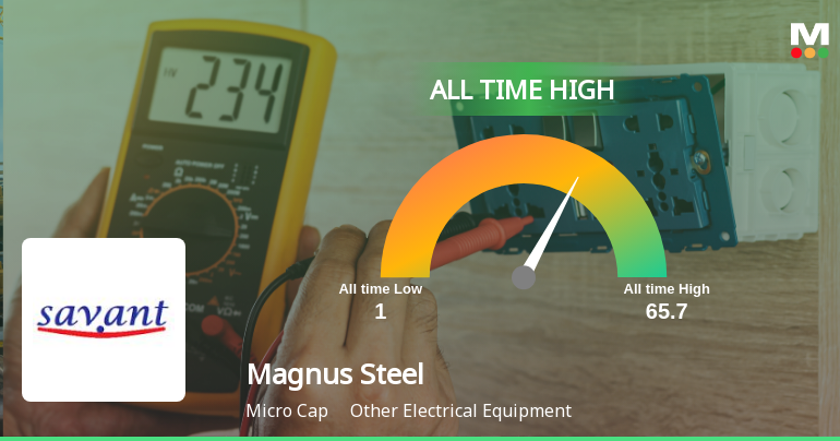 2026-03-06 10:32:14Magnus Steel & Infra Ltd has reached a significant milestone by hitting a new all-time high of Rs.67.01, marking a remarkable phase of sustained growth and strong market performance within the Other Electrical Equipment sector.