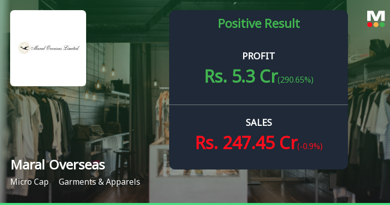 2026-02-05 19:31:31Maral Overseas Ltd., a vertically integrated textile manufacturer under the LNJ Bhilwara Group, reported a dramatic turnaround in Q3 FY26 (Oct-Dec'25), posting a net profit of ₹5.30 crores compared to a loss of ₹10.56 crores in the same quarter last year. This marks the company's first profitable quarter in five consecutive quarters of losses, driven by a substantial improvement in operating margins to 7.84% from just 0.52% a year ago.