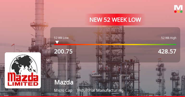 Mazda Ltd’s share price has been on a downward trajectory, losing 3.59% over the past week compared to a modest 0.75% decline in the Sensex. The one-month performance further emphasises this weakness, with the stock falling 6.06% against the Sensex’s 1.98% drop. Year-to-date, Mazda’s losses have deepened to 9.64%, significantly underperforming the benchmark’s 2.32% decline. Over the last year, the stock has suffered a steep 49.07% loss, in stark contrast to the Sensex’s 8.65% gain, highlighting a prolonged period of underperformance.