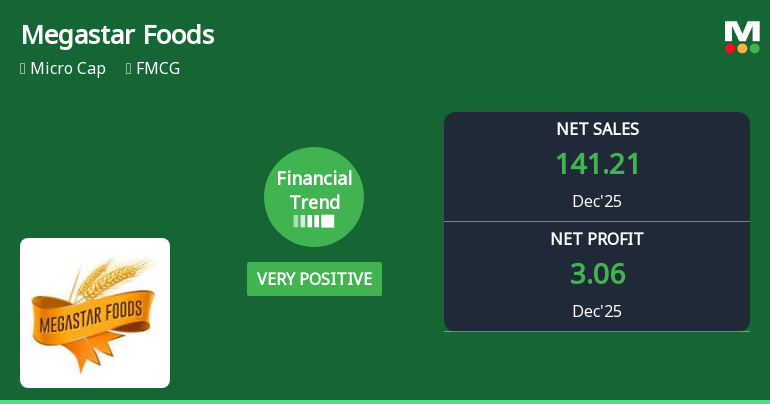 2026-02-02 10:10:04Megastar Foods Ltd is rated 'Sell' by MarketsMOJO, with this rating last updated on 19 January 2026. However, the analysis and financial metrics discussed here reflect the stock's current position as of 02 February 2026, providing investors with an up-to-date view of the company’s fundamentals, valuation, financial trends, and technical outlook.
