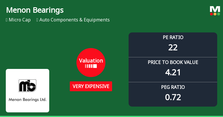 Menon Bearings Ltd, a micro-cap player in the Auto Components & Equipments sector, has seen its valuation metrics shift notably, moving from an expensive to a very expensive rating. Despite a robust share price performance relative to the Sensex over the past year, the company’s price-to-earnings (P/E) and price-to-book value (P/BV) ratios now stand well above peer averages, raising questions about price attractiveness and future growth prospects.