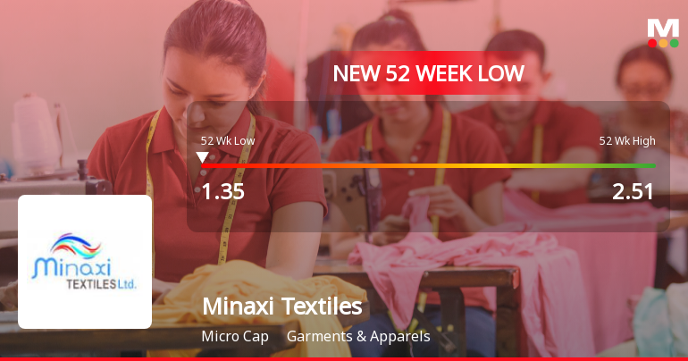 Minaxi Textiles’ share price has been under pressure over recent periods, with a one-week decline of 8.67% contrasting sharply with the Sensex’s marginal gain of 0.01%. The trend extends over longer horizons, as the stock has fallen 11.24% in the past month while the Sensex advanced 2.70%. Year-to-date figures further highlight the disparity, with Minaxi Textiles down 29.78% against the Sensex’s 9.69% rise. Over one year, the stock’s decline deepens to 37.05%, whereas the benchmark index has gained 4.83%. Even over three years, the stock remains 31.90% below its previous levels, while the Sensex has surged 36.41%. Despite this, the five-year return for Minaxi Textiles remains positive at 192.59%, outperforming the Sensex’s 90.14% gain,...