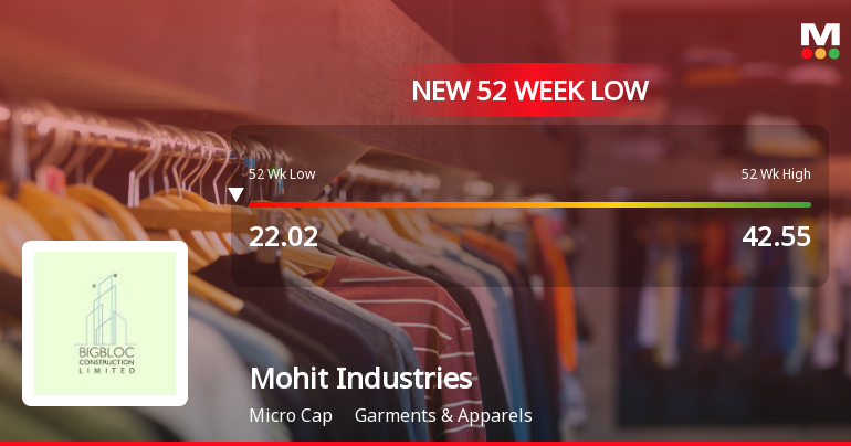 2026-03-17 12:43:38Mohit Industries Ltd, a micro-cap player in the Garments & Apparels sector, touched a fresh 52-week low of Rs.22.02 on 17 Mar 2026, marking a significant decline amid a sustained downward trend. The stock has underperformed its sector and broader market indices, reflecting ongoing concerns about its financial health and valuation metrics.