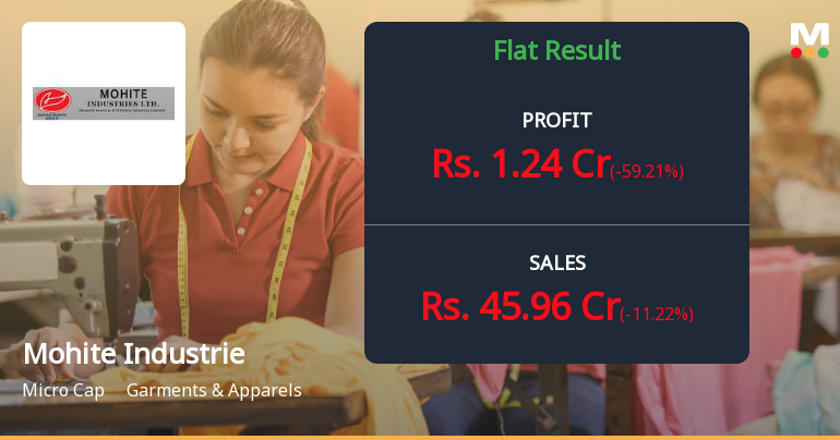 2026-02-12 20:19:03Mohite Industries Ltd., a micro-cap player in the garments and apparels sector, reported a concerning 59.21% quarter-on-quarter decline in net profit to ₹1.24 crores for Q3 FY26 (October-December 2025), despite posting modest year-on-year growth of 22.77%. The Kolhapur-based textile manufacturer, with a market capitalisation of ₹58.00 crores, saw its stock plummet 11.22% following the results announcement, closing at ₹2.69 on February 12, 2026. The sharp sequential profit contraction—from ₹3.04 crores in Q2 FY26 to ₹1.24 crores in Q3 FY26—has raised red flags about earnings sustainability, particularly as revenue declined 11.22% quarter-on-quarter to ₹45.96 crores whilst operating margins compressed significantly.
