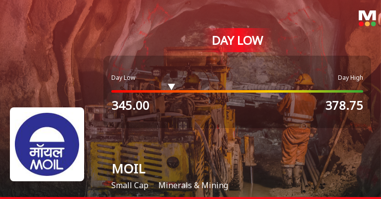 2026-01-30 13:31:43Shares of MOIL Ltd. declined sharply on 30 Jan 2026, hitting an intraday low of Rs 345, reflecting a 8.92% drop from previous levels. The stock underperformed both its sector and the broader market as investors reacted to immediate price pressures and a subdued market environment.