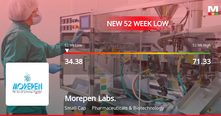 Morepen Laboratories Ltd Falls to 52-Week Low of Rs.34.1 Amidst Continued Downtrend