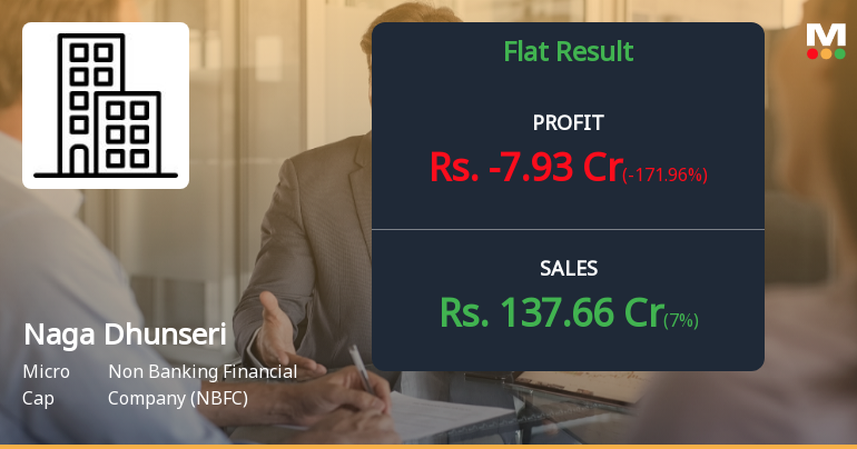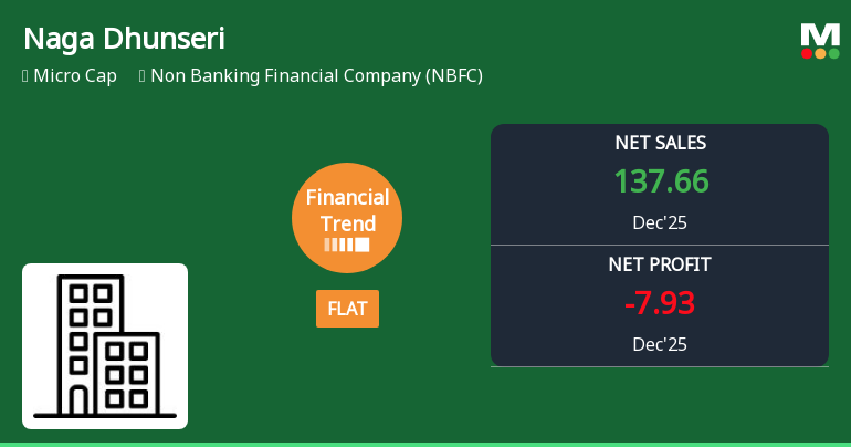2026-02-12 17:34:14Naga Dhunseri Group Ltd., a micro-cap non-banking financial company with a market capitalisation of ₹265.00 crores, has reported a consolidated net loss of ₹7.93 crores for Q3 FY26 (October-December 2025), marking a dramatic reversal from the ₹11.02 crores profit in the corresponding quarter last year. The company's stock has declined 2.36% following the results, trading at ₹2,598.70, and has plunged 44.54% from its 52-week high of ₹4,685.40.
