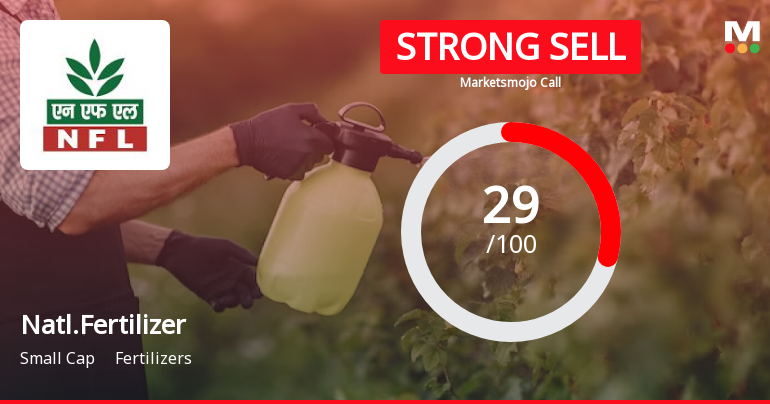 2026-03-29 10:10:37National Fertilizer Ltd is rated 'Strong Sell' by MarketsMOJO, with this rating last updated on 20 Oct 2025. However, the analysis and financial metrics presented here reflect the company’s current position as of 29 March 2026, providing investors with an up-to-date view of the stock’s fundamentals, valuation, financial trends, and technical outlook.