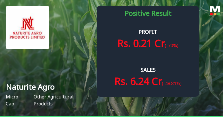 2026-02-13 23:46:48Naturite Agro Products Ltd., a micro-cap manufacturer of capsicum oleoresin and natural extracts, posted a net profit of ₹0.21 crores in Q3 FY26, marking a sharp 70.00% decline from ₹0.70 crores in Q2 FY26, though representing a turnaround from a loss of ₹0.44 crores in Q3 FY25. The Hyderabad-based company, with a market capitalisation of ₹116.00 crores, continues to face severe headwinds as its stock trades at ₹216.00, down 41.22% over the past year and 46.63% below its 52-week high of ₹404.75.