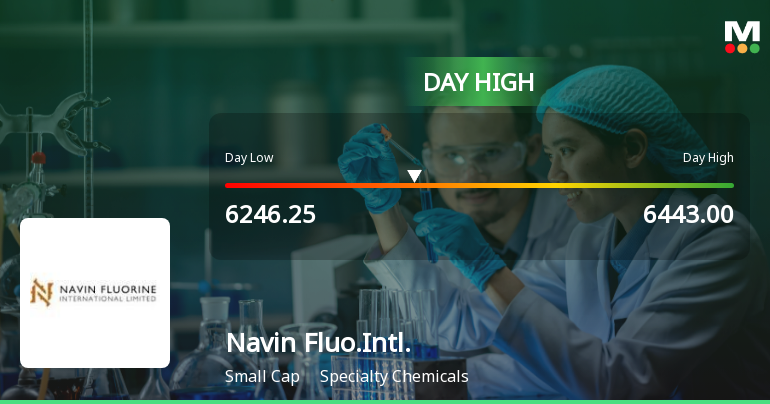2026-02-03 09:33:32Navin Fluorine International Ltd has reached a significant milestone by hitting an all-time high of Rs.6443, marking a remarkable achievement in its market journey. This surge reflects the company’s robust performance and sustained growth within the specialty chemicals sector.