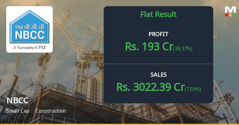 2026-02-14 00:00:53NBCC (India) Ltd., the government-owned Navratna construction and project management consultancy enterprise, reported a consolidated net profit of ₹193.00 crores for Q3 FY26 (October-December 2025), marking a robust 39.37% year-on-year growth. However, the stock has struggled to translate this operational momentum into market performance, declining 2.39% to ₹98.10 following the results announcement, as investors grapple with margin compression concerns and deteriorating technical indicators.