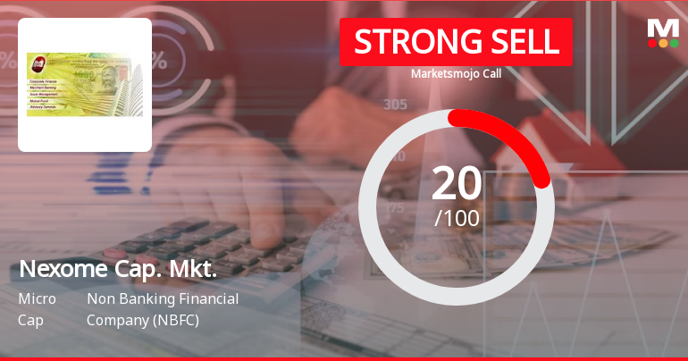 2026-02-18 10:10:25Nexome Capital Markets Ltd is rated Strong Sell by MarketsMOJO, with this rating last updated on 08 January 2026. However, the analysis and financial metrics discussed here reflect the stock's current position as of 18 February 2026, providing investors with an up-to-date view of the company’s fundamentals, valuation, financial trends, and technical outlook.