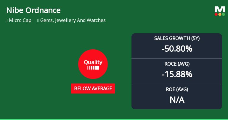 "description": "Nibe Ordnance & Maritime Ltd has recently undergone a significant quality parameter downgrade, moving from a non-rated status to a below average quality grade as of 18 Feb 2026. This shift reflects deteriorations in key business fundamentals including profitability, capital efficiency, and growth metrics, despite the stock’s impressive price appreciation over the past year. This article analyses the underlying financials, compares the company’s performance with peers, and assesses the implications for investors."