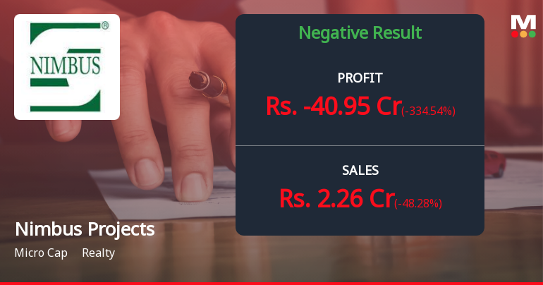 2026-02-11 09:37:02Nimbus Projects Ltd., a Delhi-based real estate company with a market capitalisation of ₹401.54 crores, reported a consolidated net loss of ₹40.95 crores for Q3 FY26, marking a sharp deterioration from the ₹17.46 crores profit posted in the previous quarter. The micro-cap stock has declined 30.01% over the past three months, trading at ₹207.85 as investors react to mounting operational challenges and revenue contraction.