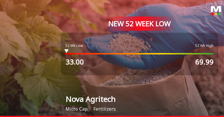 2026-01-23 13:07:56Shares of Nova Agritech Ltd, a player in the fertiliser sector, declined sharply to hit a new 52-week low of Rs.33 on 23 Jan 2026, marking a significant milestone in the stock’s downward trajectory over the past year.