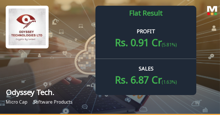 2026-02-12 09:40:07Odyssey Technologies Ltd., a micro-cap software products company with a market capitalisation of ₹82.00 crores, reported a sharp decline in profitability for Q3 FY26 (October-December 2025), with net profit plummeting 88.00% quarter-on-quarter to ₹0.03 crores from ₹0.25 crores in Q2 FY26. The stock, trading at ₹53.80, has declined 47.61% over the past year, significantly underperforming both the Sensex and its software products peer group.