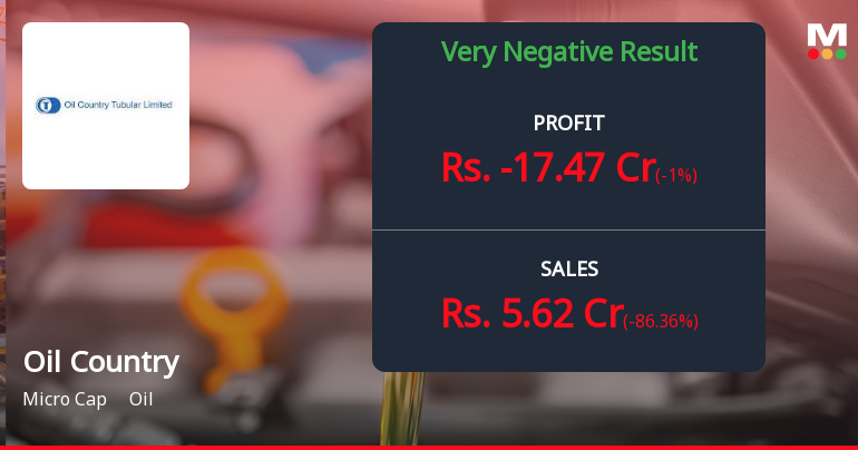 2026-02-12 20:22:09Oil Country Tubular Ltd. (OILCOUNTUB), a micro-cap manufacturer of oil country tubular goods for drilling and exploration, reported deeply troubling Q3 FY26 results that signal accelerating operational distress. The company posted a net loss of ₹17.47 crores for the quarter ended December 2025, marking a sharp deterioration from the ₹21.57 crore loss in Q2 FY26 and a dramatic reversal from the ₹1.64 crore profit recorded in Q3 FY25. Revenue collapsed 44.08% quarter-on-quarter to just ₹5.62 crores, whilst the year-on-year decline reached a staggering 86.36%, raising serious questions about the sustainability of operations.