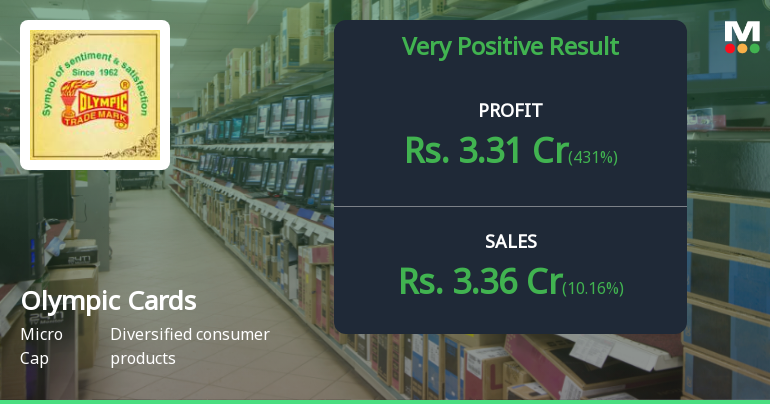 Olympic Cards Ltd’s recent price action has been notably positive. Over the past week, the stock surged by 11.54%, vastly outperforming the Sensex’s marginal gain of 0.13% during the same period. This upward momentum extended over the last month as well, with the stock appreciating 10.00% while the Sensex declined by 0.66%. Such short-term strength indicates renewed investor interest and buying pressure, which has propelled the stock price higher in the immediate term.
