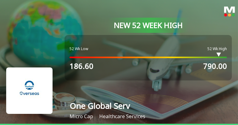 One Global Service Provider Ltd, a prominent player in the Healthcare Services sector, achieved a significant milestone today by reaching a new 52-week and all-time high of Rs.787.65. This marks a continuation of the stock’s robust upward momentum, reflecting strong market performance and sustained growth over the past year.