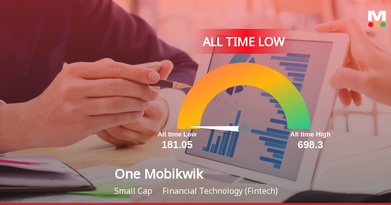 2 Mar: Stock hits 52-week and all-time low at Rs.181.05 with a 7.91% gap down opening