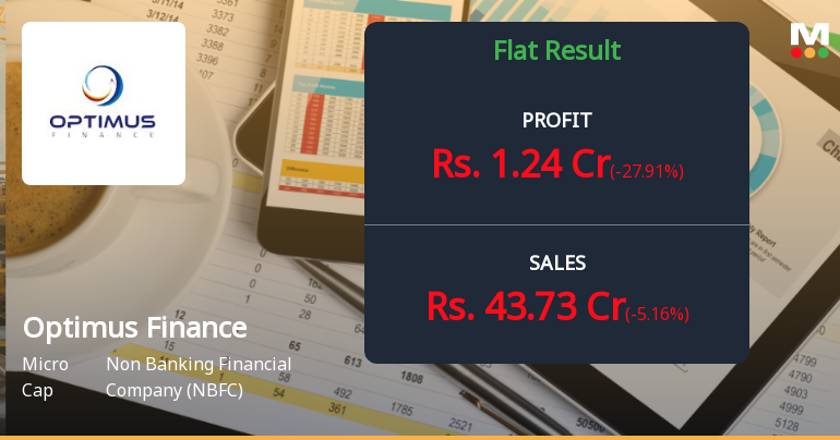 2026-02-12 18:16:22Optimus Finance Limited, a micro-cap non-banking financial company with a market capitalisation of ₹112.00 crores, reported consolidated net profit of ₹1.72 crores for Q2 FY26, representing a sequential growth of 19.44% from Q1 FY26 and a year-on-year expansion of 23.74% from Q2 FY25. Despite this seemingly robust profit growth, the stock has suffered a brutal correction, plummeting 31.69% over the past year and trading 49% below its 52-week high of ₹29.00, currently priced at ₹14.79 as of February 12, 2026.