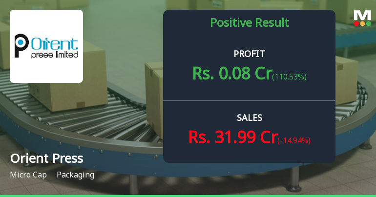 2026-02-14 08:43:43Orient Press Ltd., a micro-cap packaging company with a market capitalisation of ₹60.00 crores, reported a marginal quarterly profit of ₹0.08 crores for Q3 FY26 (October-December 2025), marking a rare positive quarter after consecutive losses. However, the accomplishment remains modest against a backdrop of declining revenues, compressed margins, and a stock price that has plunged 34.68% over the past year to ₹59.60, now trading at its 52-week low.