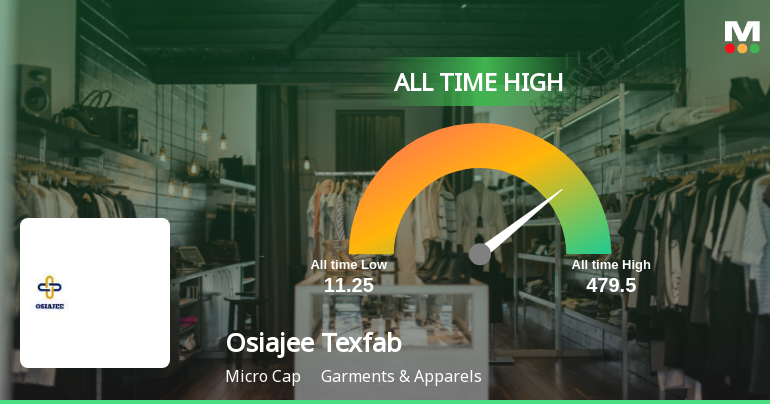 Osiajee Texfab Ltd Hits All-Time High at Rs.479.5, Marking a Milestone in Garments & Apparels Sector