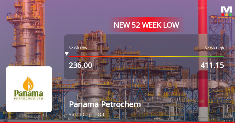 Panama Petrochem Ltd has declined to a fresh 52-week low, reflecting a challenging year marked by underwhelming financial results and subdued market performance. The stock touched an intraday low near Rs 260, underscoring persistent pressures within the oil sector and the company’s relative underperformance compared to broader indices.