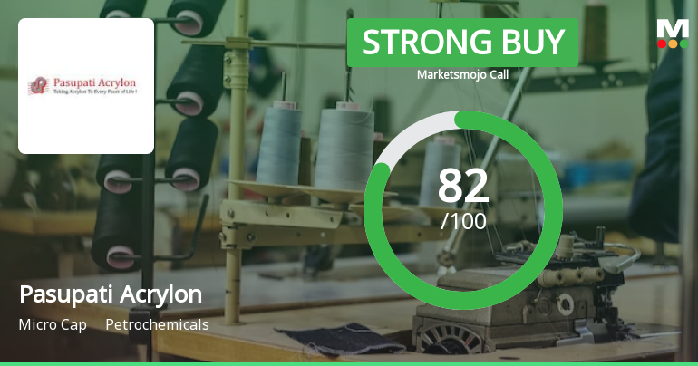2026-02-16 10:11:08Pasupati Acrylon Ltd is rated Strong Buy by MarketsMOJO, with this rating last updated on 11 February 2026. However, the analysis and financial metrics discussed here reflect the stock’s current position as of 16 February 2026, providing investors with the most up-to-date insight into the company’s performance and outlook.