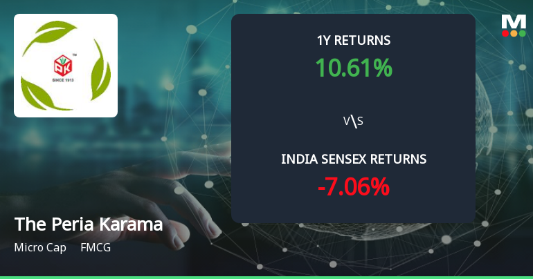 2026-02-28 10:10:25The Peria Karamalai Tea & Produce Company Ltd is rated 'Sell' by MarketsMOJO, with this rating last updated on 09 February 2026. However, the analysis and financial metrics discussed here reflect the stock's current position as of 28 February 2026, providing investors with an up-to-date view of the company’s fundamentals, valuation, financial trend, and technical outlook.