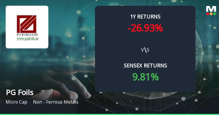 2026-02-17 10:10:20PG Foils Ltd is rated Strong Sell by MarketsMOJO, with this rating last updated on 31 July 2025. However, the analysis and financial metrics discussed here reflect the stock's current position as of 17 February 2026, providing investors with an up-to-date view of the company’s fundamentals, valuation, financial trends, and technical outlook.