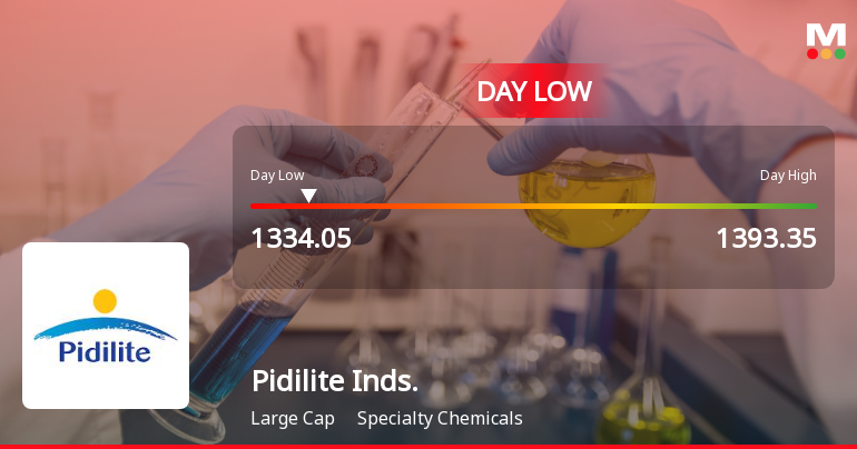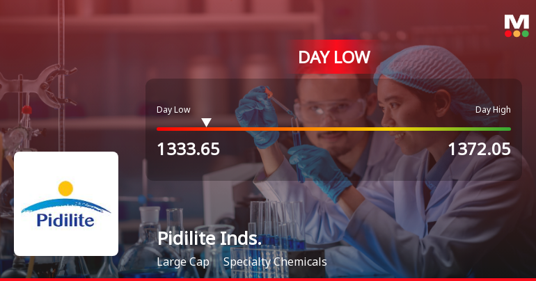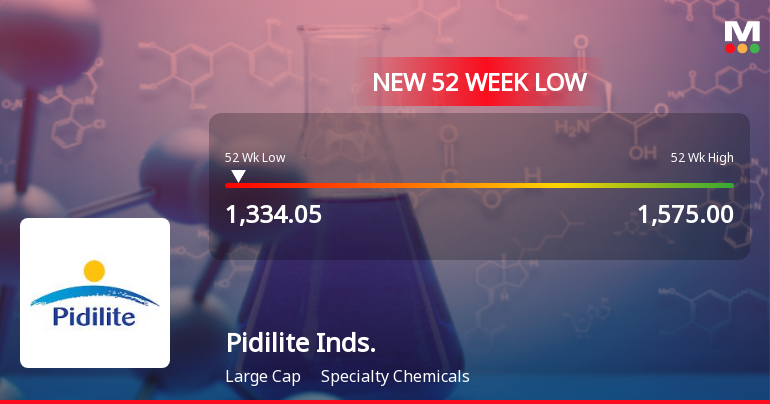 2026-03-13 19:31:47Pidilite Industries Ltd, a prominent player in the Specialty Chemicals sector, has declined to a fresh 52-week low of Rs.1334.05, marking a significant price level amid a broader market downturn. The stock has underperformed its sector and key benchmarks, reflecting a combination of valuation concerns and recent financial metrics.