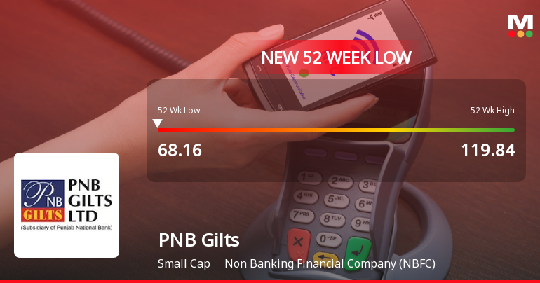 2026-03-13 19:04:37PNB Gilts Ltd has declined to a fresh 52-week low of Rs.71.53, marking a significant price level amid a broader market downturn. The stock has underperformed its sector and key indices, reflecting ongoing pressures within the Non Banking Financial Company (NBFC) segment.