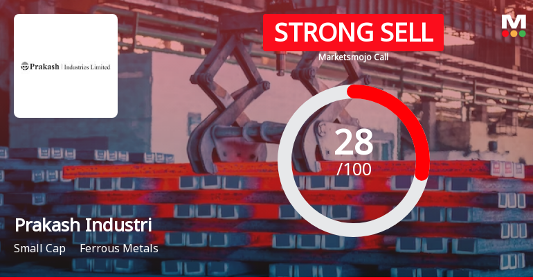 2026-01-11 10:10:39Prakash Industries Ltd is rated Strong Sell by MarketsMOJO, with this rating last updated on 05 Jan 2026. However, the analysis and financial metrics discussed here reflect the stock’s current position as of 11 January 2026, providing investors with the latest insights into the company’s performance and outlook.