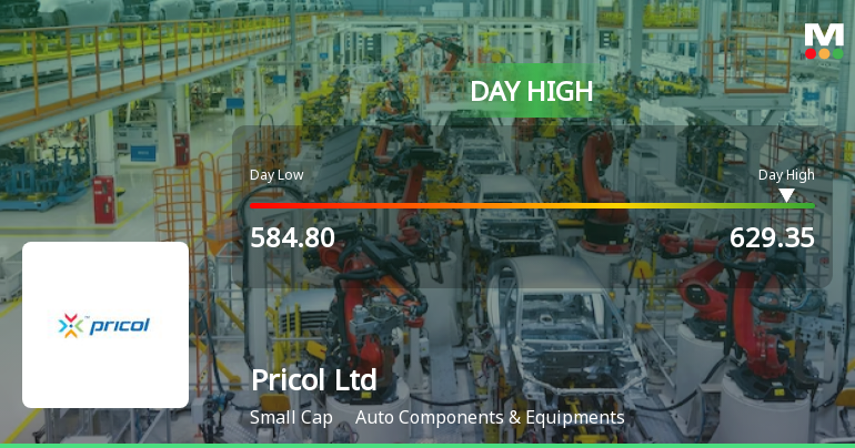 Pricol Ltd demonstrated robust intraday strength on 11 Feb 2026, surging to a day’s high of Rs 625.1, marking a 6.9% rise and outperforming its sector and broader market indices amid mixed market conditions.