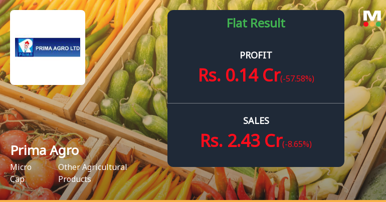 2026-02-13 08:00:07Prima Agro Ltd, a player in the Other Agricultural Products sector, has reported a flat financial performance for the quarter ended December 2025, signalling a notable shift from its previously positive growth trajectory. Despite a modest increase in profit after tax (PAT) over the last six months, the company’s overall financial trend has deteriorated, prompting a downgrade in its Mojo Grade to Strong Sell.