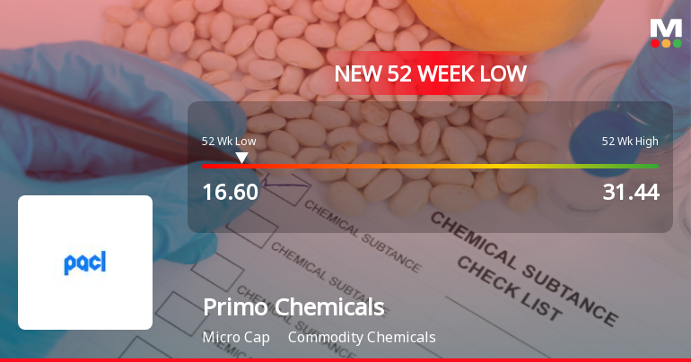 Primo Chemicals Ltd Falls to 52-Week Low of Rs.17.34 Amid Market Downturn
