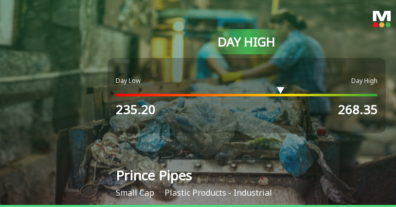 2026-03-10 12:15:58Prince Pipes & Fittings Ltd recorded a robust intraday performance on 10 Mar 2026, surging to an intraday high of Rs 268.35, marking a significant 14.14% rise from previous levels. The stock outperformed its sector and broader market indices, reflecting heightened trading activity and volatility during the session.
