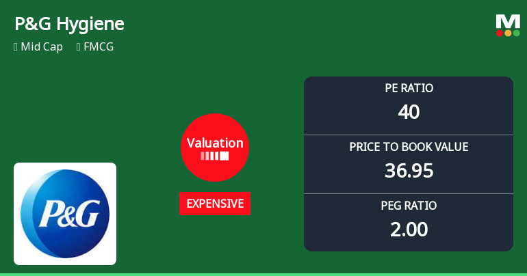 "description": "Procter & Gamble Hygiene & Health Care Ltd. has experienced a notable shift in its valuation parameters, moving from a very expensive to an expensive rating. This change, reflected in key metrics such as the price-to-earnings (P/E) and price-to-book value (P/BV) ratios, signals a recalibration of the stock’s price attractiveness amid a challenging market backdrop and relative to its FMCG peers."