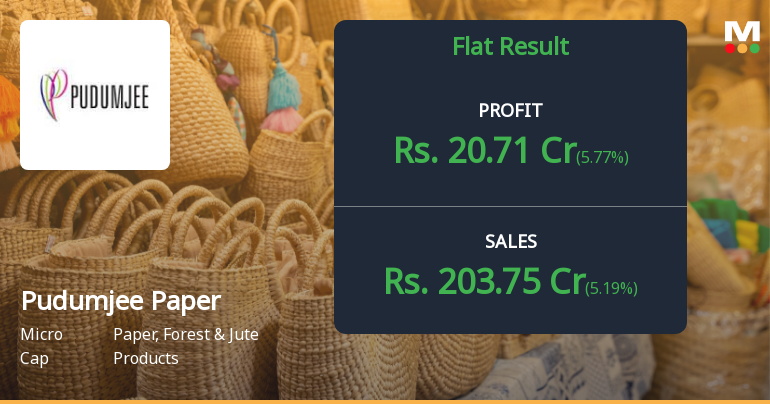 2026-01-31 17:47:29Pudumjee Paper Products Ltd., a Pune-based specialty paper manufacturer with a market capitalisation of ₹783.00 crores, reported a mixed performance in Q3 FY26 (October-December 2025), with net profit rising 22.42% quarter-on-quarter to ₹20.71 crores but declining 5.77% year-on-year from ₹19.58 crores. The results highlight operational challenges as margins contracted despite modest revenue growth, whilst the stock has witnessed significant erosion, declining 39.01% over the past year to trade at ₹85.24 as of January 30, 2026.