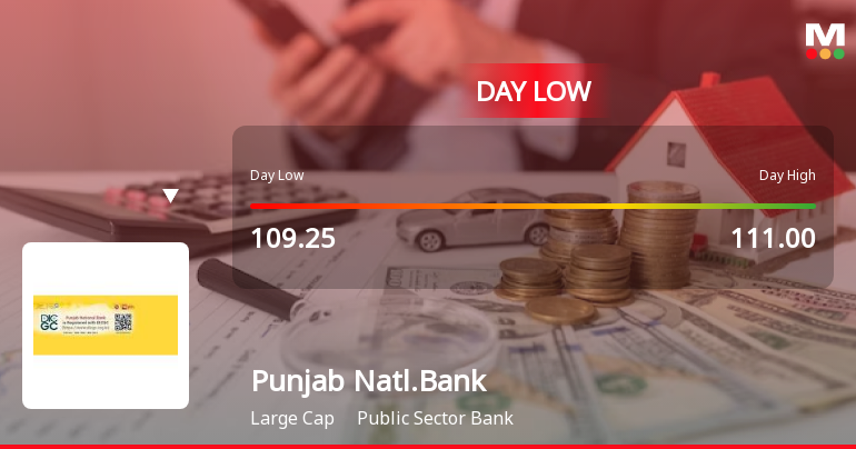 2026-03-19 14:15:59Punjab National Bank (PNB) experienced a notable intraday decline on 19 Mar 2026, touching a low of Rs 109.35, down 3.32% from the previous close. This underperformance came amid broader market weakness and sectoral pressures, with the stock falling below multiple key moving averages and reversing gains from the prior two sessions.