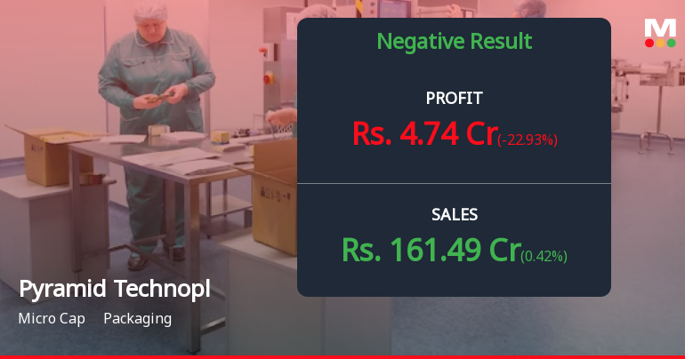 2026-02-10 19:41:20Pyramid Technoplast Ltd's latest financial results for the quarter ended December 2025 reveal a complex picture of operational challenges. The company reported a modest increase in net sales, with a quarter-on-quarter growth of 0.42%, reaching ₹161.49 crores. However, this growth in revenue did not translate into profitability, as net profit fell sharply by 22.93% to ₹4.74 crores compared to the previous quarter. This decline in net profit is particularly concerning when viewed in the context of a year-on-year drop of 30.19% from ₹6.79 crores in Q3 FY25, indicating significant structural challenges. The profitability metrics reflect ongoing difficulties, with the profit after tax (PAT) margin contracting to 2.94%, down from 3.82% in the previous quarter. This margin compression suggests rising cost pressures that the company has struggled to mitigate through pricing strategies or operational efficiencies. ...