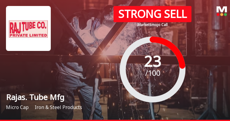 2026-03-02 10:10:36Rajasthan Tube Manufacturing Co Ltd is rated Strong Sell by MarketsMOJO, with this rating last updated on 22 December 2025. However, the analysis and financial metrics discussed here reflect the stock's current position as of 02 March 2026, providing investors with an up-to-date view of the company’s fundamentals, valuation, financial trends, and technical outlook.